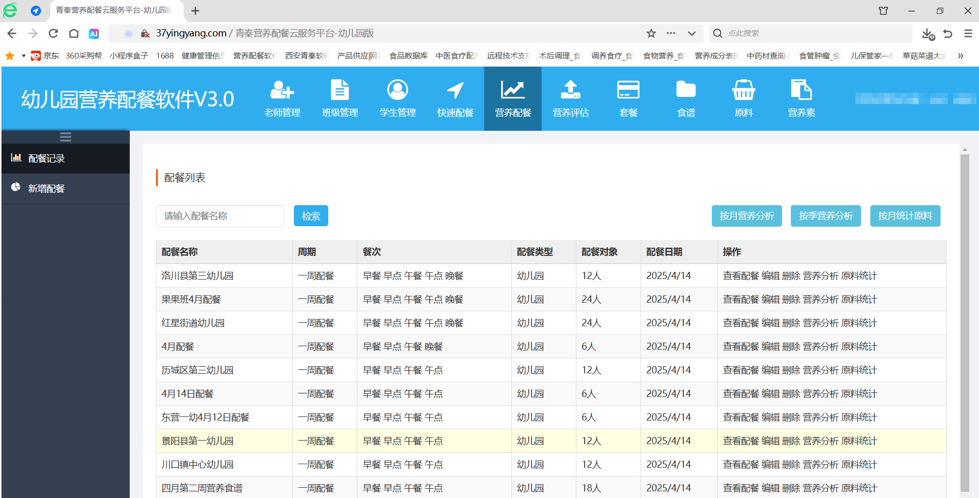 幼儿园营养配餐软件适用范围: